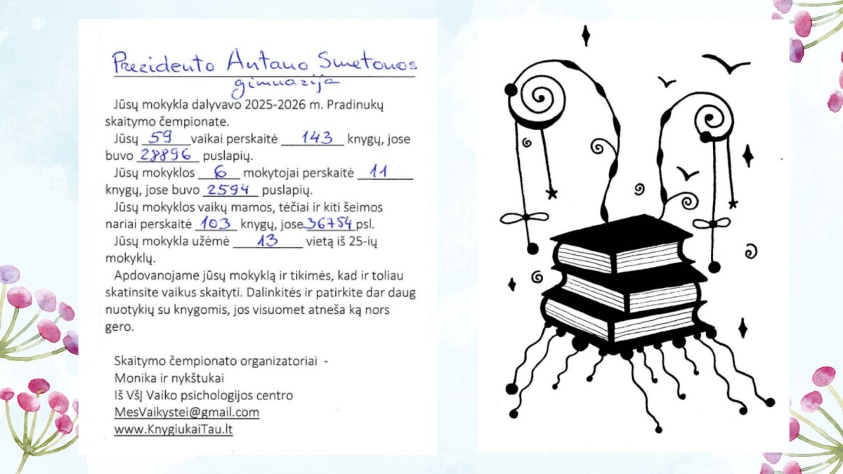 Prezidento Antano Smetonos gimnazija šiais mokslo metais aktyviai dalyvavo Vaiko psichologijos centro organizuotame Pradinukų skaitymo čempionate. Tai buvo ne tik konkursas, bet ir prasminga, bendruomenę vienijanti iniciatyva, kvietusi vaikus, jų tėvus ir mokytojus leistis į keturių mėnesių skaitymo nuotykį.