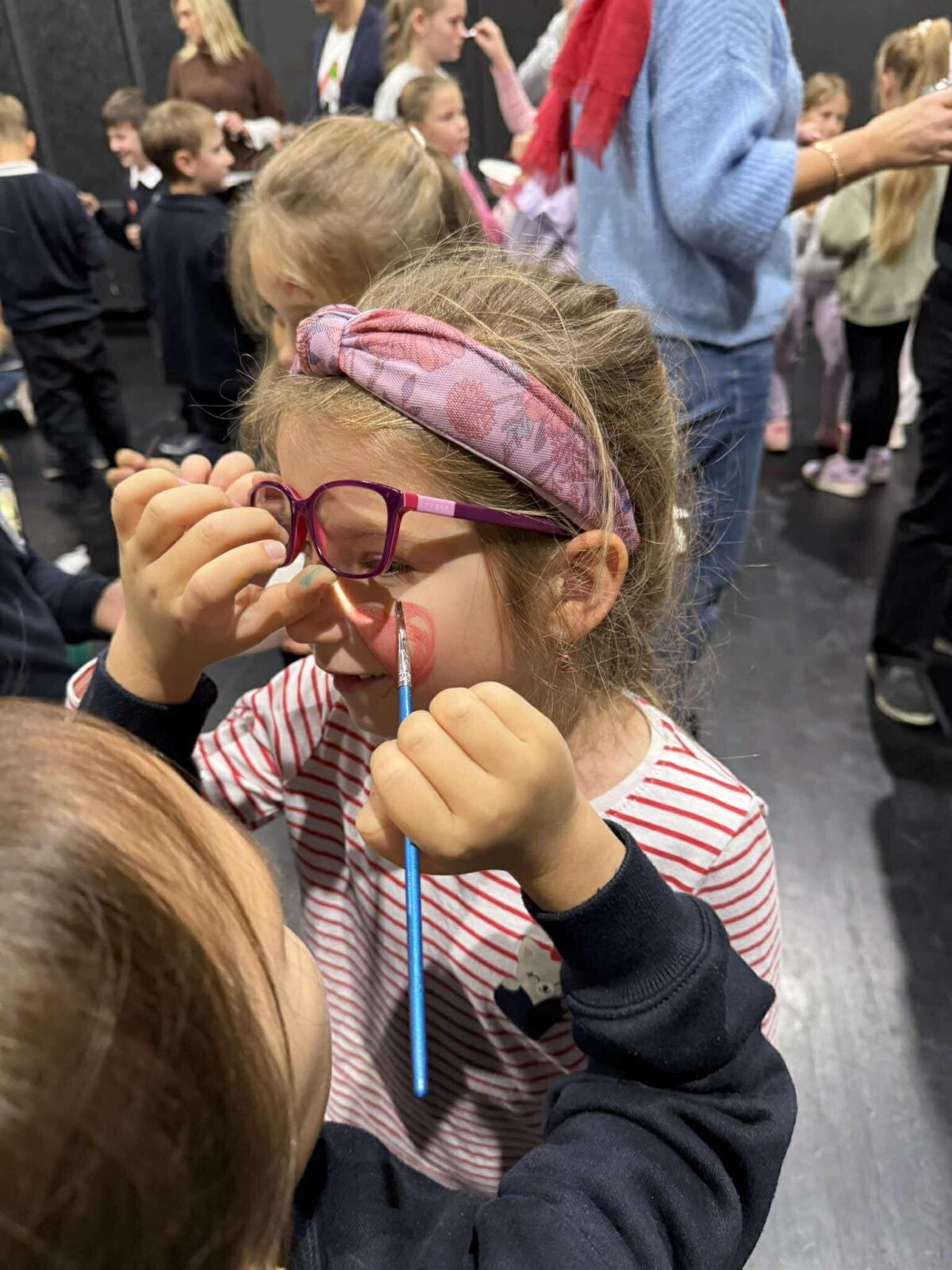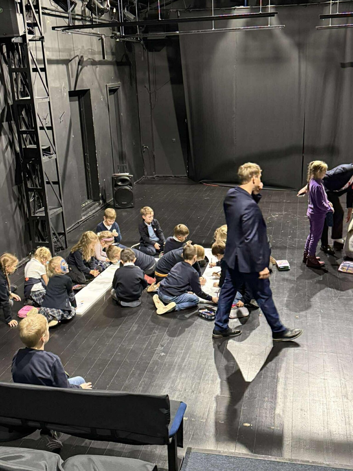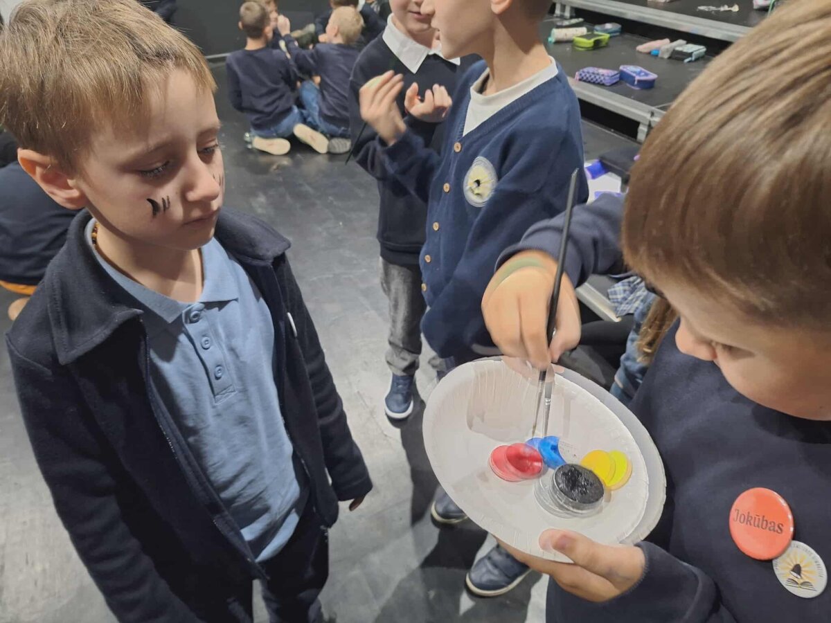 Spalio 16 dieną mūsų mokyklos pirmokų ir antrokų laukė užburianti kelionė po teatro užkulisius! Kauno Kameriniame teatre vyko antroji TŪM II programos Nr. 41.2 „Teatro metodų taikymas mokinių skaitymo, matematikos, istorijos, gamtos mokslų pamokose“ edukacija. Bibliotekininkė Vilma Gerasimovienė kartu su mokytojomis Natalija Kaliniene (1a klasė) ir Vitana Bakutiene (2a klasė) keliavo su savo mokiniais į įspūdingą teatro pasaulį. Kauno miesto kamerinio teatro aktoriai Modesta Jakeliūnaitė ir Dominykas Snarskis tapo vaikų gidais po teatrališkąją visatą. Edukacija prasidėjo pažintimi su dramaturgo darbu. Vaikai susiskirstė į grupeles, kūrė piešinius ir pasakojo savo sugalvotas istorijas. Kas būtų pagalvojęs, kad keletas pieštuko brūkšnių gali virsti tikru siužetu? Didžiausias susidomėjimas kilo, kai mažuosius teatralus nuvedė į grimerinę ir kostiuminę. Čia galėjai pamatyti, kaip aktoriai tampa personažais. Vaikai taip pat virto teatro menininkais. Gavę grimo dažų ir teptukus jie vienas kitą keitė į personažus. Paskui atėjo eilė „prisimatuoti“ perukus, karūnas, skrybėles. Ir štai salėje jau ne mokiniai, o tikri teatro veikėjai. Įsijautę į savo roles, vaikai žygiavo per sceną. Kiekvienas žingsnis – tai charakterio atskleidimas, kiekvienas gestas – spektaklio dalis. Paskutinėje edukacijos dalyje buvo pristatyta scenografo profesiją. Dvi komandos gavo užduotį – nuspalvinti scenos dekoracijas. Kai darbas buvo baigtas, visa grupė pražygiavo pro sukurtas butaforines arkas, jausdamiesi tikrais spektaklio kūrėjais.