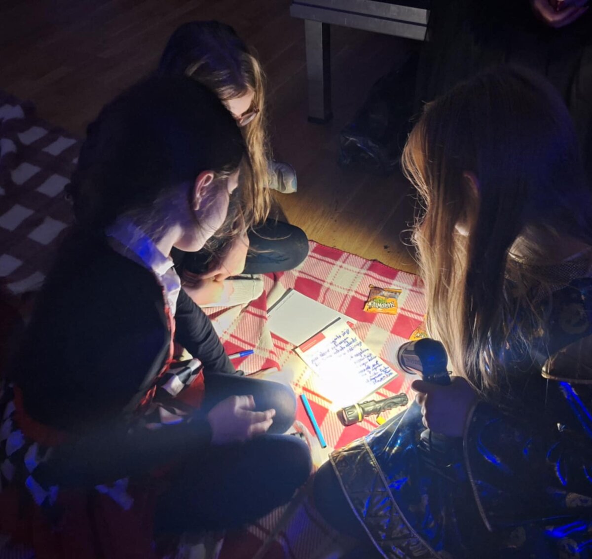 Vakaro metu vaikai žaidė helovynišką bingo su užduotimis – juokėsi kaip vaiduokliai, sukosi kaip šikšnosparniai ir atliko kitas smagias užduotis. Vakaronės kulminacija tapo „Šiurpių" kūrimas, kai vaikų grupelės rašė šiuolaikinės tautosakos tekstus. Vėliau, susėdę ratu tamsoje, vaikai pasakojo savo istorijas užsidegę žibintus, kurie teikė paslaptingos šviesos ir kėlė tikrą šiurpnakčio nuotaiką.