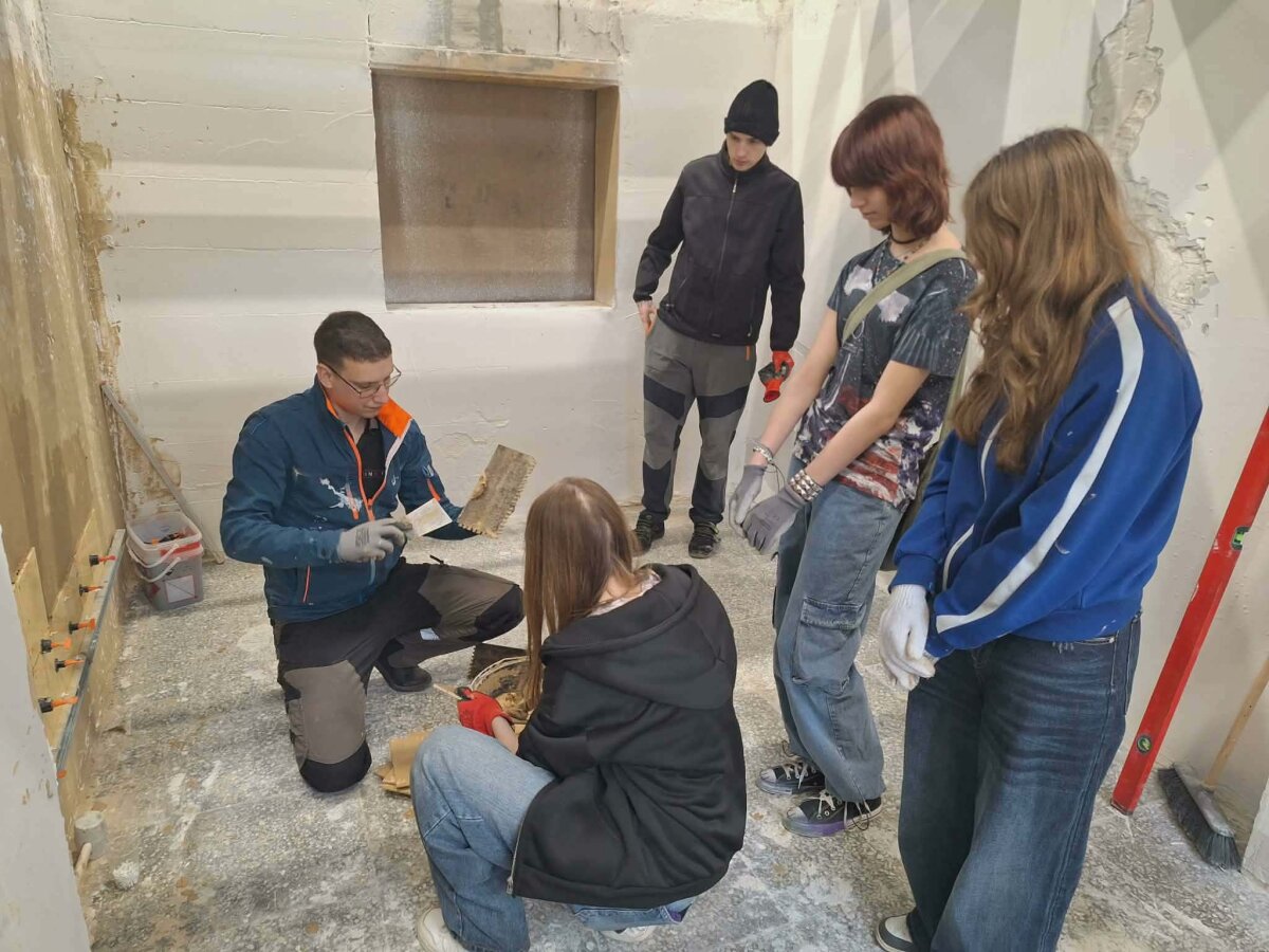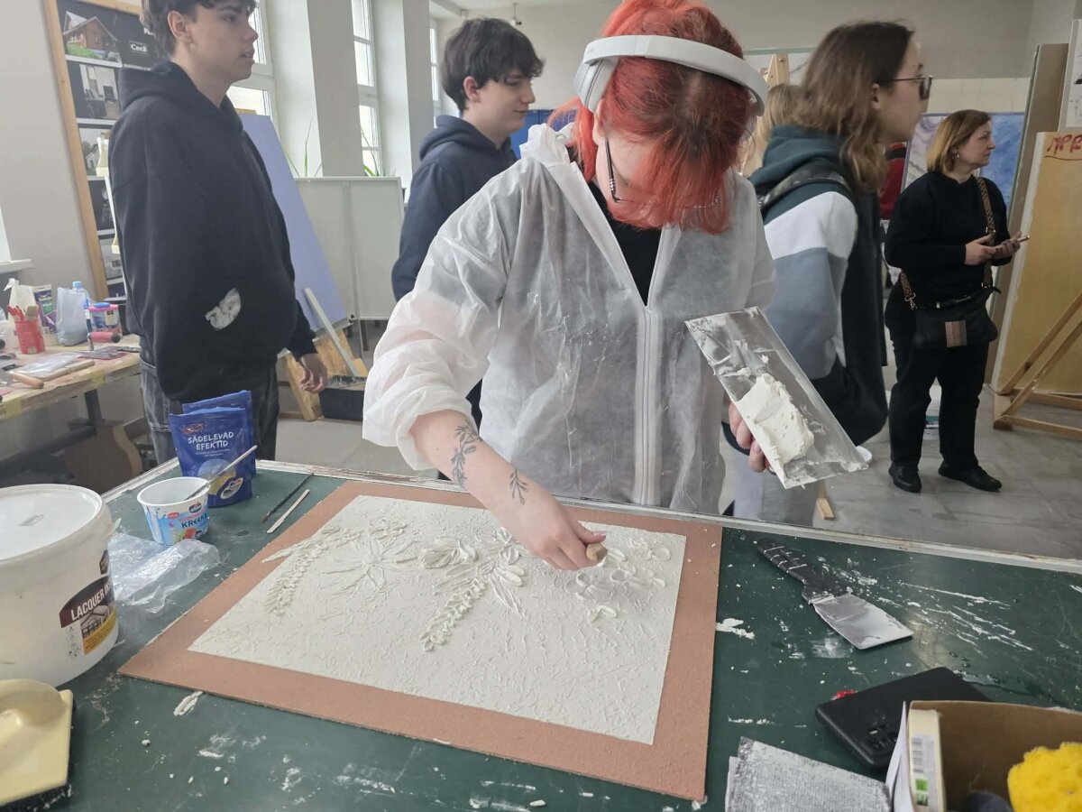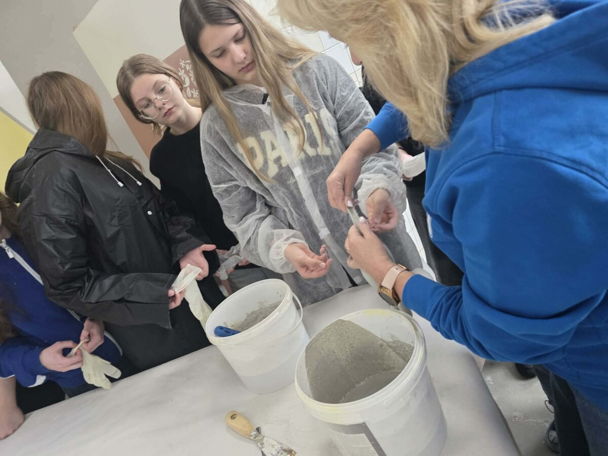 Kauno technologijų mokymo centrą aplankė penktokai ir aštuntokai, penktokai išbandė darbus su medžiu įvairius dirbinius, o aštuntokai išbandė dekoratyvinį tinkavimą ir gipso liejimus.