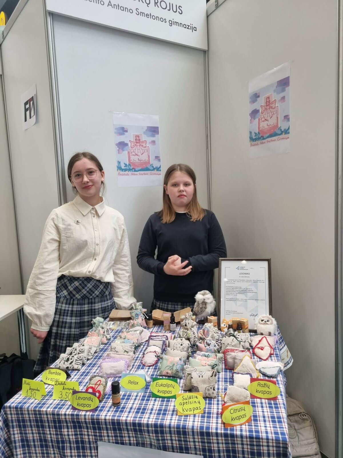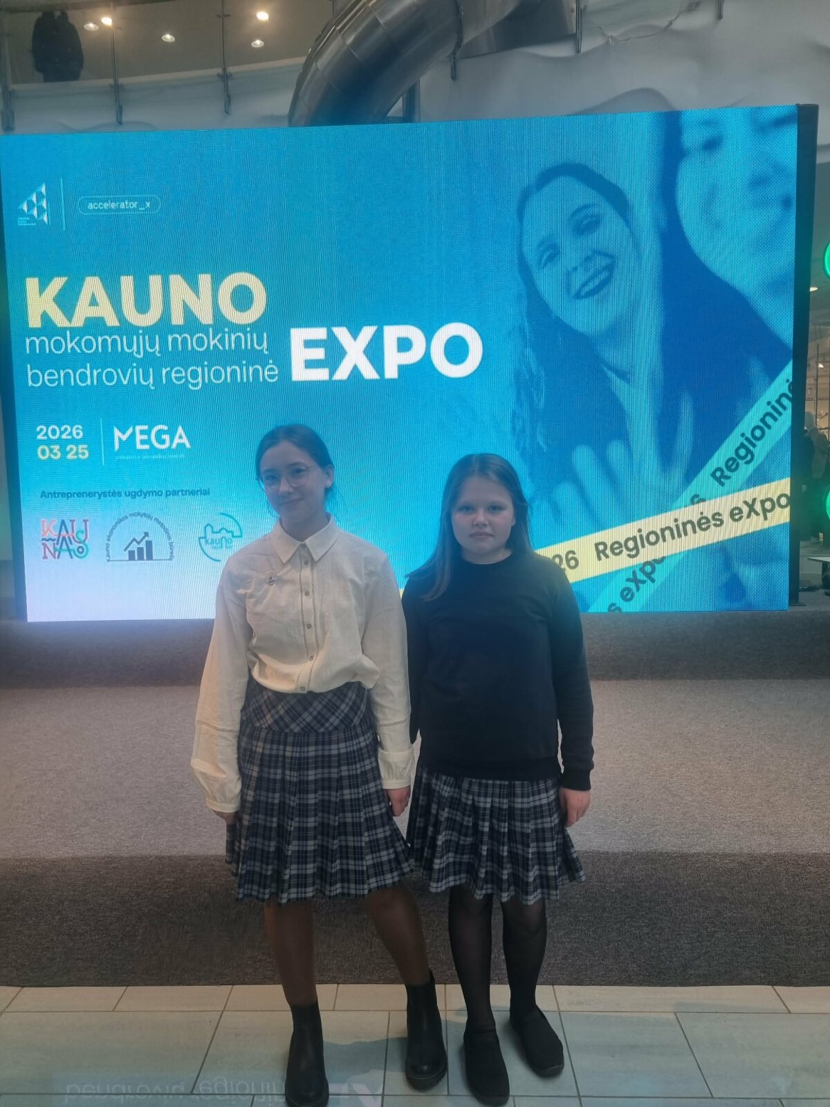 Kovo 25 d. prekybos centre "Mega" susirinko net 77 mokomosios mokinių bendrovės iš įvairių miesto mokyklų. Gimnazijai atstovavo 5a klasės moksleivės Rugilė Kyguolytė ir Miglė Narijauskaitė. Merginos gamino įvairius kvapukus , juos siuvo iš lino, bei pripildė ekologiška bei gerai kvapą išlaikančia medžiaga. Rugilė ir Miglė rūpinasi todėl bendradarbiauja su įmone, kuri siuva iš lino , o likusias atraižas atsiunčia mokomajai bendrovei, iš kurių ji siuva kvapus. Kaip ankstesnė Expo ir parodos parodė, tai produktas, kuris rado kelią į klientų širdis!